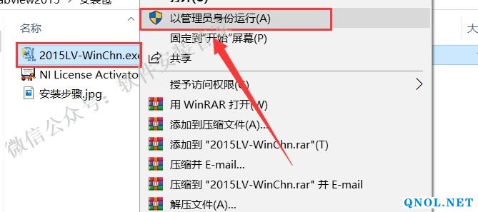 2.双击打开解压后的【Labview2015】文件夹,选中【2015LV-WinChn】鼠标右击选择【以管理员身份运行】。