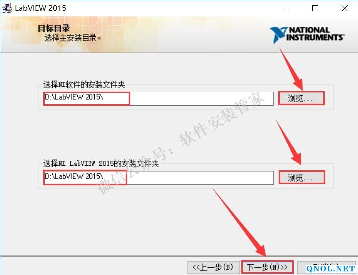 9.点击【浏览】更改安装路径建议安装到除C盘以外的磁盘,可在D盘或者其他盘创建一个【Labview2015】文件夹。然后点击【下一步】。