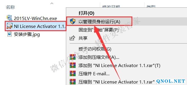 23.返回安装包中找到【NI LIcense Activator1.1】,鼠标右击选择【以管理员身份运行】。
