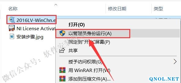 2.双击打开解压后的【Labview2016】文件夹,选中【2016LV-WinChn】鼠标右击选择【以管理员身份运行】。