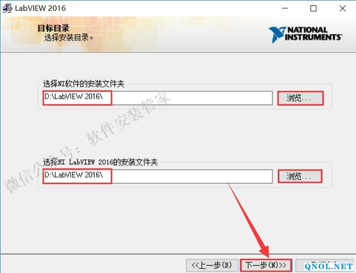 9.点击【浏览】更改安装路径建议安装到除C盘以外的磁盘,可在D盘或者其他盘创建一个【Labview2016】文件夹。然后点击【下一步】。