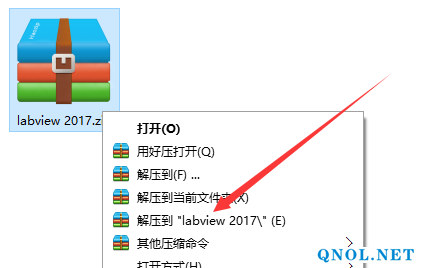 1、右击软件压缩包选择解压到LabVIEW2017。