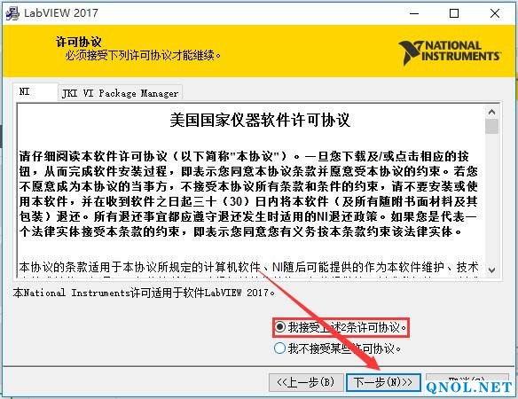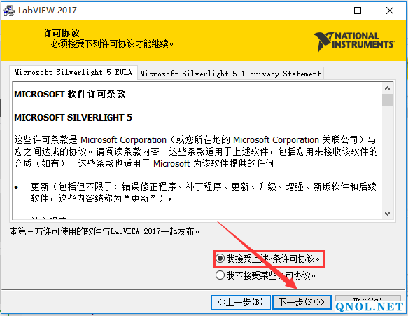 14、勾选我接受上述2条许可协议。然后点击下一步。