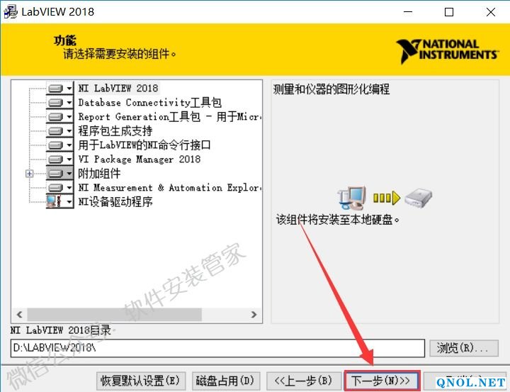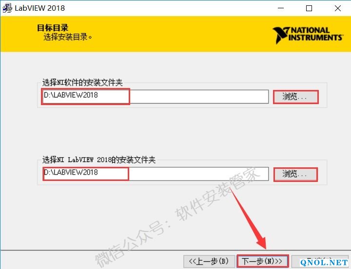 9.点击浏览更改安装路径建议安装到除C盘以外的磁盘,可在D盘或者其他盘创建一个LABVIEW2018文件夹。然后点击下一步。