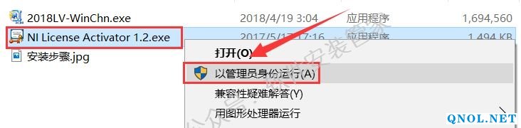 22.返回安装包中找到NI LIcense Activator1.2,鼠标右击选择以管理员身份运行。