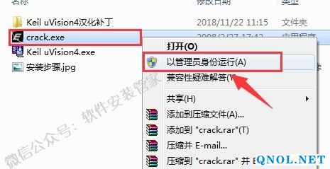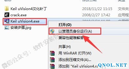 3.选中【KeiluVision4】可执行文件,鼠标右击选择【以管理员身份运行】。