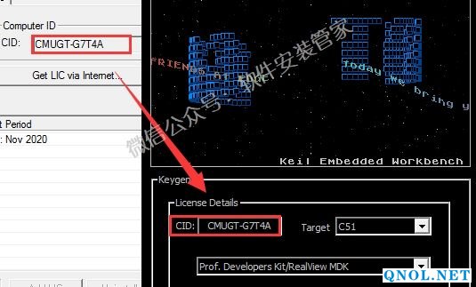 14.使用快捷键Ctrl+C复制软件许可证管理器中的【CID】在注册机的【CID】框中使用快捷键Ctrl+V粘贴。