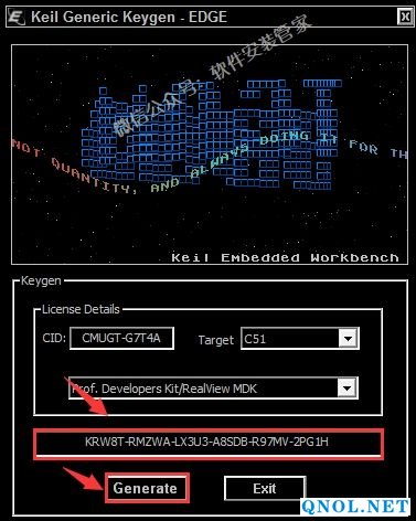 15.点击【Generate】并使用快捷键Ctrl+C复制上面框中生成的激活码。