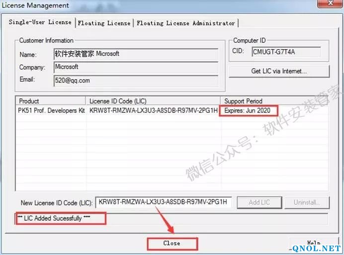 17.激活成功,如果嫌激活的时间短可以换个激活码,然后点击【Close】。