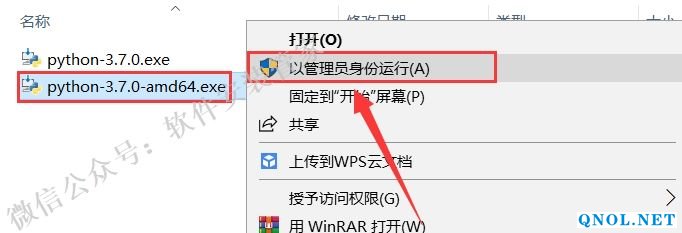 3.在桌面鼠标右击我的电脑选择属性查看自己的电脑位数,64位系统选中【python-3.7.0.amd64】(32位系统就选择上面的)然后鼠标右击选择【以管理员身份运行】。