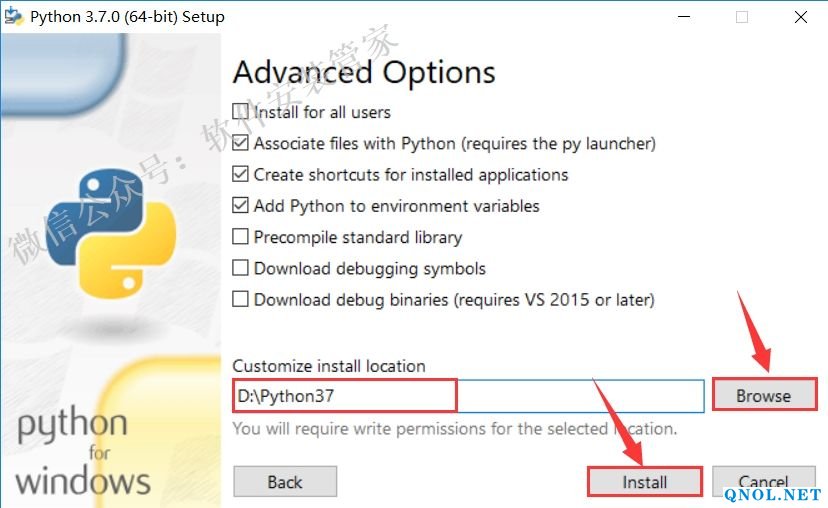 6.点击【Browse】更改软件的安装目录,建议在D盘或其他磁盘新建一个【Python37】文件夹,点击【Install】。