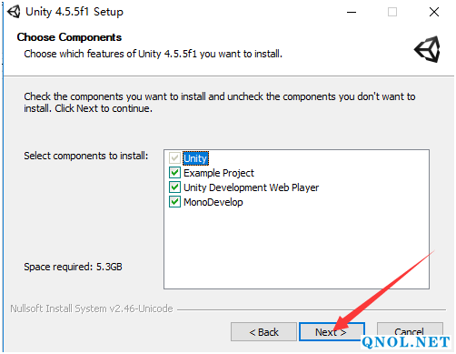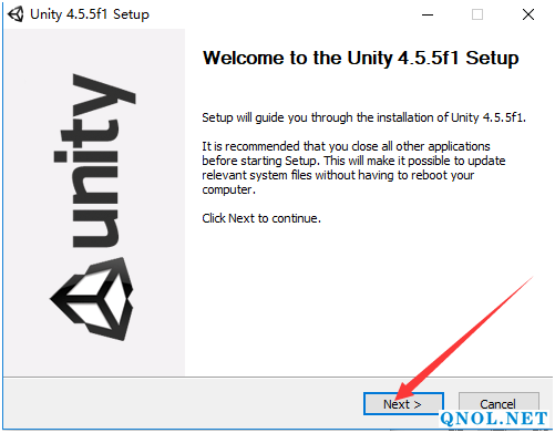 2、双击打开解压文件夹中UnitySetup-4.5.5.exe。