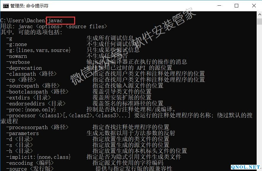 23.输入【javac】可以看到这些信息。温馨提示:这三个指令出现这样的界面说明JDK安装并配置成功。