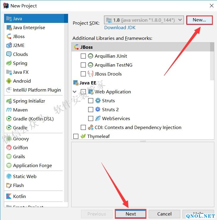 28.点击【New】选择自己JDK的安装路径,默认安装路径为C:\Program Files\Java\jdk1.8.0_144,然后点击【Next】。