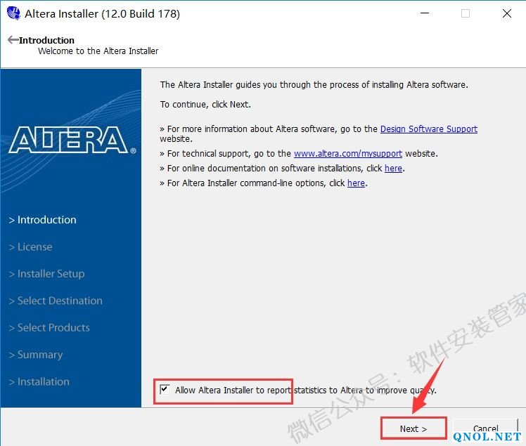 20.勾选【Allow Altera Installer …】点击【Next>】。