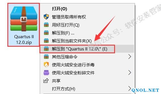 1.鼠标右击【Quartus II 12.0】压缩包选择【解压到Quartus II 12.0】。