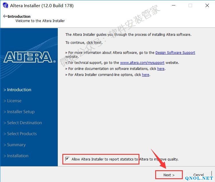 7.勾选【Allow Altera Installer …】然后点击【Next>】。