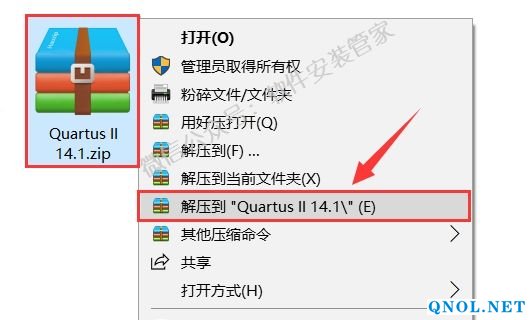 1.鼠标右击【Quartus II 14.1】压缩包选择【解压到Quartus II 14.1】。