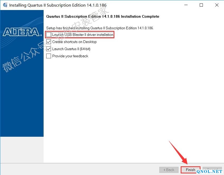 12.取消勾选【Launch USB Blaster …】然后点击【Finish】。