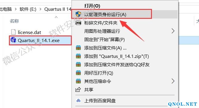 25.鼠标右击【Quartus_II_14.1.exe】选择【以管理员身份运行】。