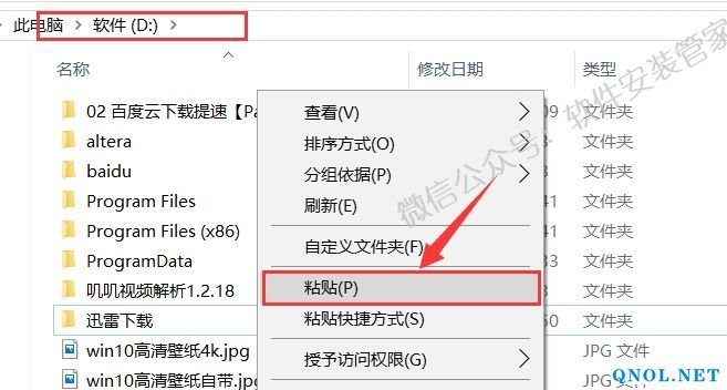 33.在D盘的根目录下的空白处鼠标右击选择【粘贴】。