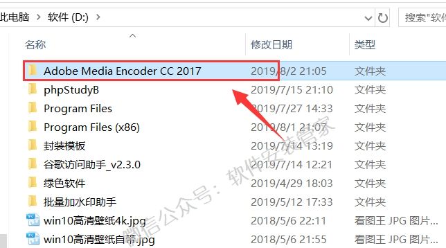 2)点击【Adobe Media Encoder CC 2017】返回到上一级目录。