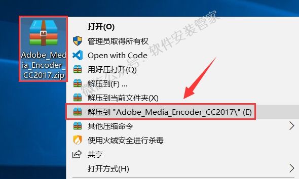 1.鼠标右击【Adobe_Media_Encoder_CC2017】压缩包选择【解压到Adobe_Media_Encoder_CC2017】。