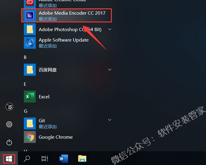 9.在开始菜单找到【Adobe Media Encoder CC 2017】用鼠标往桌面拖动即可创建桌面快捷方式。