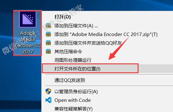 1)鼠标右击【Adobe Media Encoder CC 2017】软件图标选择【打开文件所在的位置】。