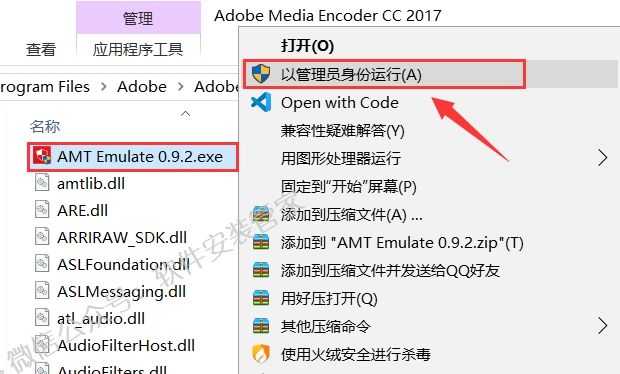 8.打开安装包解压后的【Adobe_Media_Encoder_CC2017】文件夹,选中【AMT Emulate 0.9.2.exe】鼠标右击选择【复制】。