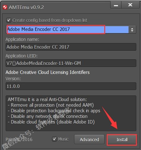 13.选择【Adobe Media Encoder CC 2017】然后点击【Install】。