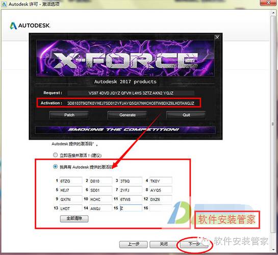 14、点击“我具有Autodesk提供的激活码”将生成的激活码复制到入内,点击NEXT