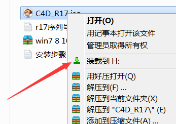 10.返回文件夹,选择C4D_R17.iso,按下鼠标右键,点击装载到。
