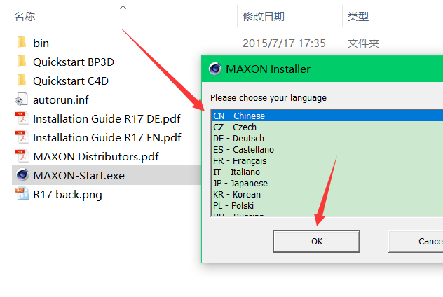 12.双击MAXON-Start.exe选择cn-Chinese点击ok