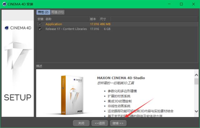 19. 点击右侧的三个点更改软件安装路径,建议安装到除C盘以外的磁盘,可在D盘或其它盘新建一个文件夹C4DR17,然后点击继续。温馨提示:软件安装的目录不能带中文。