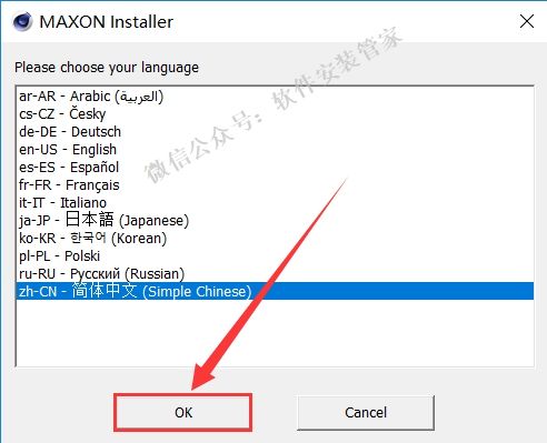 5.选择【简体中文】,点击【OK】.