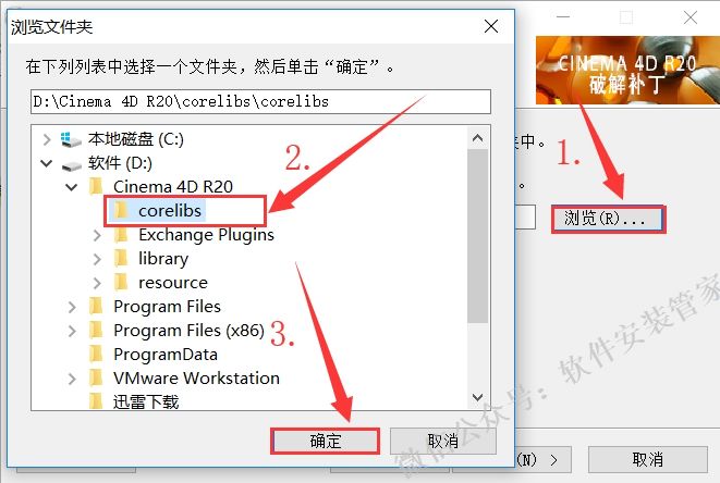 16.点击【浏览】找到并选中软件安装目录下的【corelibs】文件夹,点击【确定】。