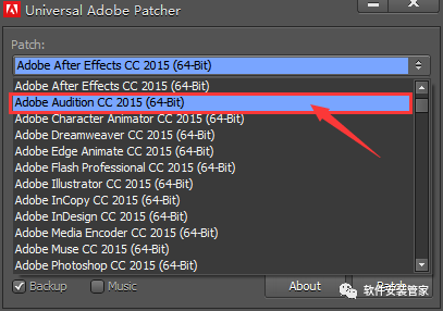 15.在红框所示地方找到Adobe Audition cc2015,并选择;