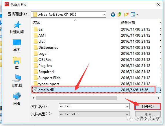 18.弹出查找对话框,依次找到软件安装位置,最终找到“amtlib”文件,选择此文件(点击一下即可),然后点击“打开”;