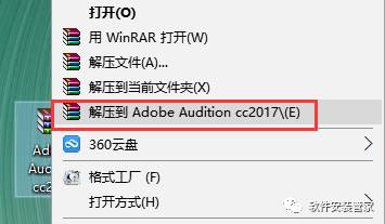 1.安装之前先把电脑的网络断了,然后右击软件压缩包,选择解压到Adobe Audition cc2017;