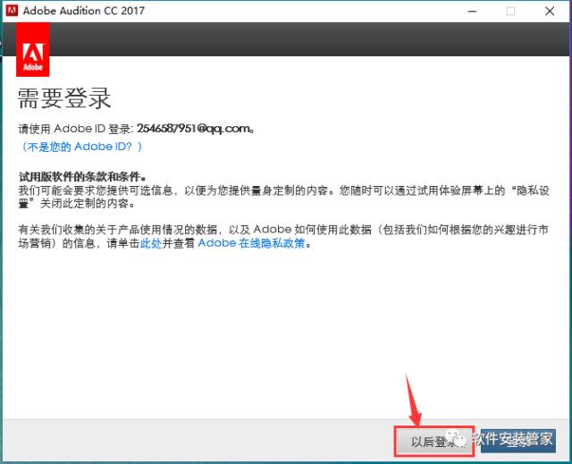 6.弹出这个对话框,点击“以后登陆”;