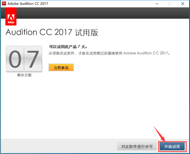 7.点击开始试用;