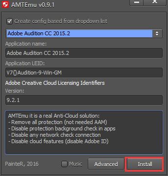 11.在红框所指示的区域找到“Adobe Audition cc2015.2”,点击确认,并点击“Install”如图所示;