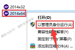 17.64位系统打开【2014x64】,32位系统打开【2014x32】。以64位系统为例,选中【2014x64】后,鼠标右击选择【以管理员身份运行】。温馨提示:若打开注册机文件夹后里面没有注册机程序,则需要关闭你电脑杀毒软件和防火墙后再重新解压安装包后打开。