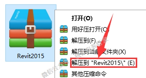 1.鼠标右击软件压缩包,选择解压到【Revit2015】。