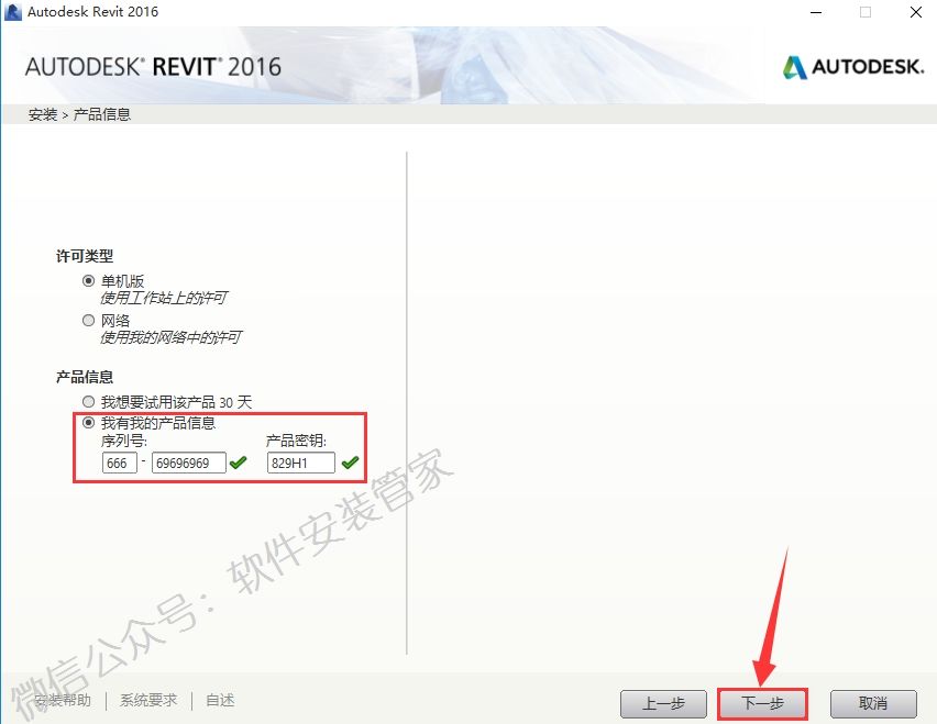 7.输入序列号:666-69696969 产品密钥:829H1 然后点击【下一步】。