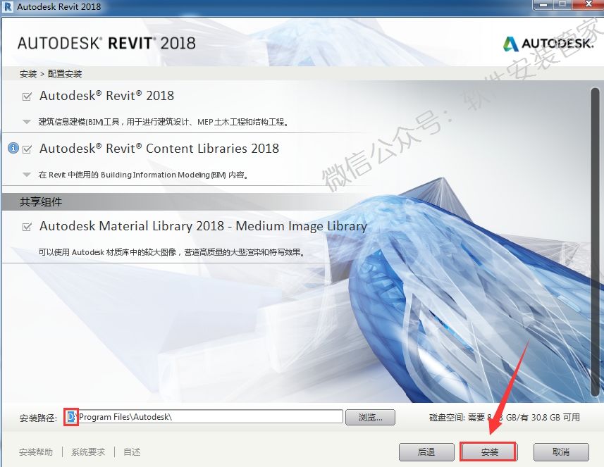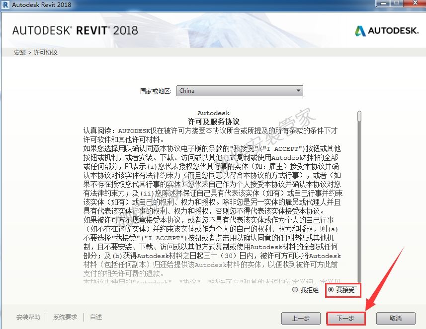4.点击右侧的“更改”更改软件解压位置,建议解压到除C盘以外的磁盘,可在D盘或其它盘新建一个Revit2018文件夹。