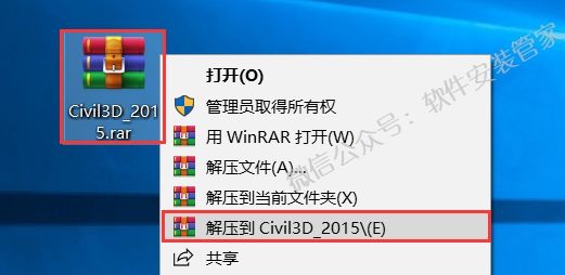 1.点击【Civil3D_2015】压缩包,鼠标右击选择【解压到Civil3D_2015】。