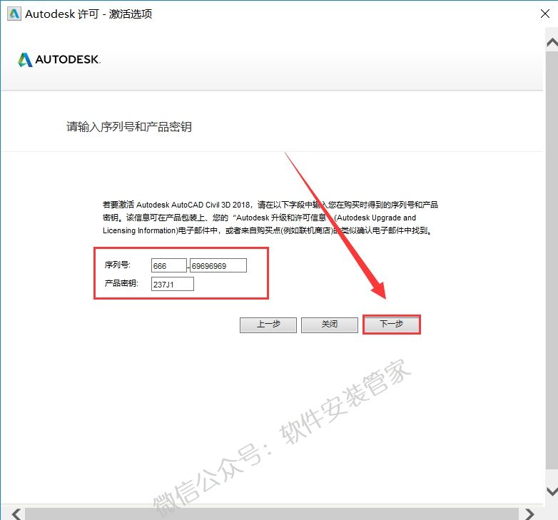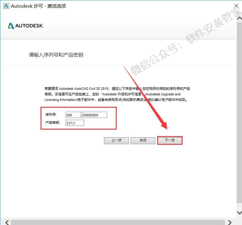 19.输入序列号:666-69696969,产品密钥:237J1,点击【下一步】。
