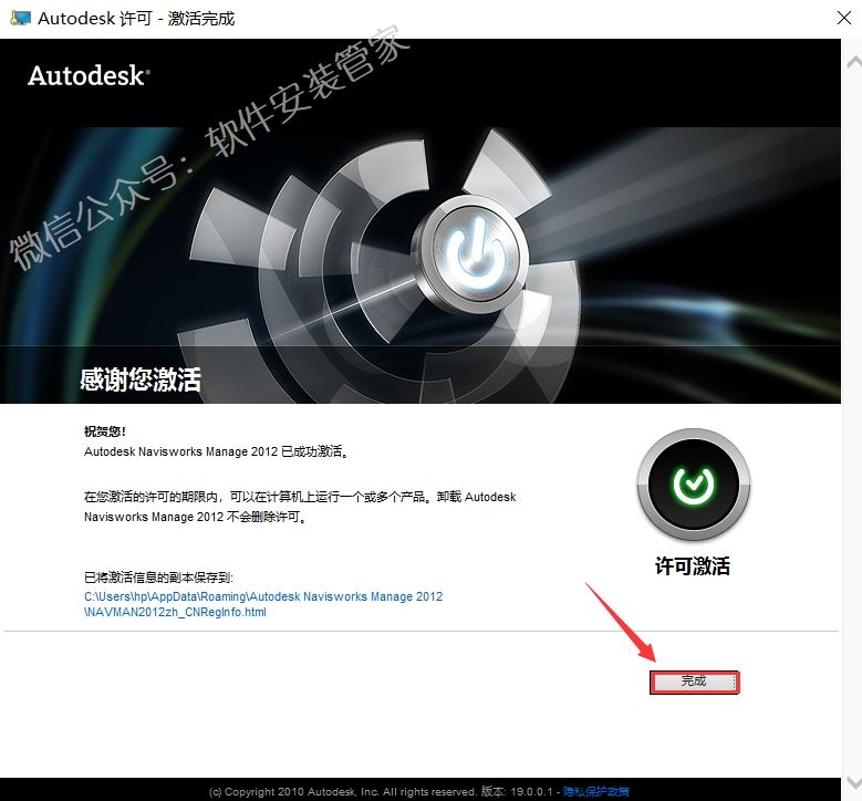 20.把【申请号】复制到注册机里面的【Request】中(记得删除原【Request】中的内容),先点击【MemPatch】弹出对话框后再点击确定,再点击【Generate】后复制【Activeation】中生成的激活码,然后粘贴激活码至【我具有Autodesk提供的激活码】方框中。最后点击【下一步】即可。